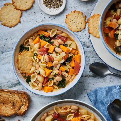 Pour une présentation impressionnante, servez la soupe avec des rondelles de parmesan cuites au four. Préchauffez le four à 400 ° F (200 ° C). Utilisez 1/2 tasse (125 mL) de parmesan râpé et déposez des cuillères à soupe de parmesan râpé sur une plaque à pâtisserie tapissée de papier sulfurisé, à environ 5 cm (2 pouces) d'intervalle. Enfournez 5 minutes ou jusqu'à doré et croustillant. Laissez refroidir complètement.