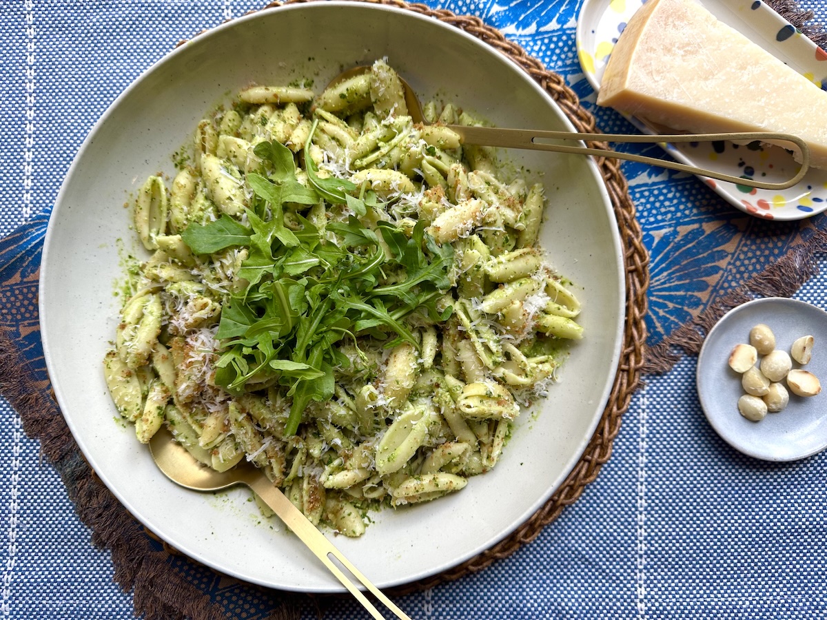 Cavatelli with Arugula and Macadamia Pesto
