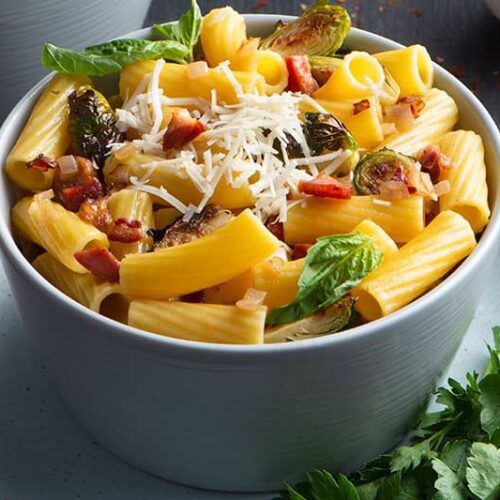 The bitterness of the Brussels sprouts is balanced with the nutty flavour of Asiago cheese and the saltiness of the pancetta in this delectable bocconcini recipe.